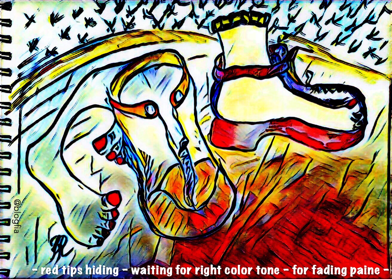 Arthritis October 21, 2018October 21, 2018 by B i r g i t t a, posted in drawings, Feelings, HAIKU, Poetry, sketch – red tips hiding – waiting for right color tone – for fading paine – Like Loading...