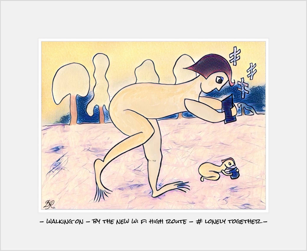 #LonelyTogether October 24, 2018 by B i r g i t t a, posted in drawings, HAIKU, just for fun, Poetry, sketch – walking on – by the new wi fi high route – # lonely together –