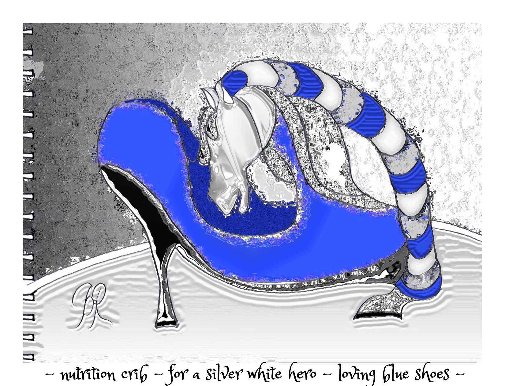 Loving Blue Shoes October 28, 2018 by B i r g i t t a, posted in Art, drawings, HAIKU, Poetry, shoes, sketch – nutrition crib – for a silver white hero – loving blue shoes – Like Loading...
