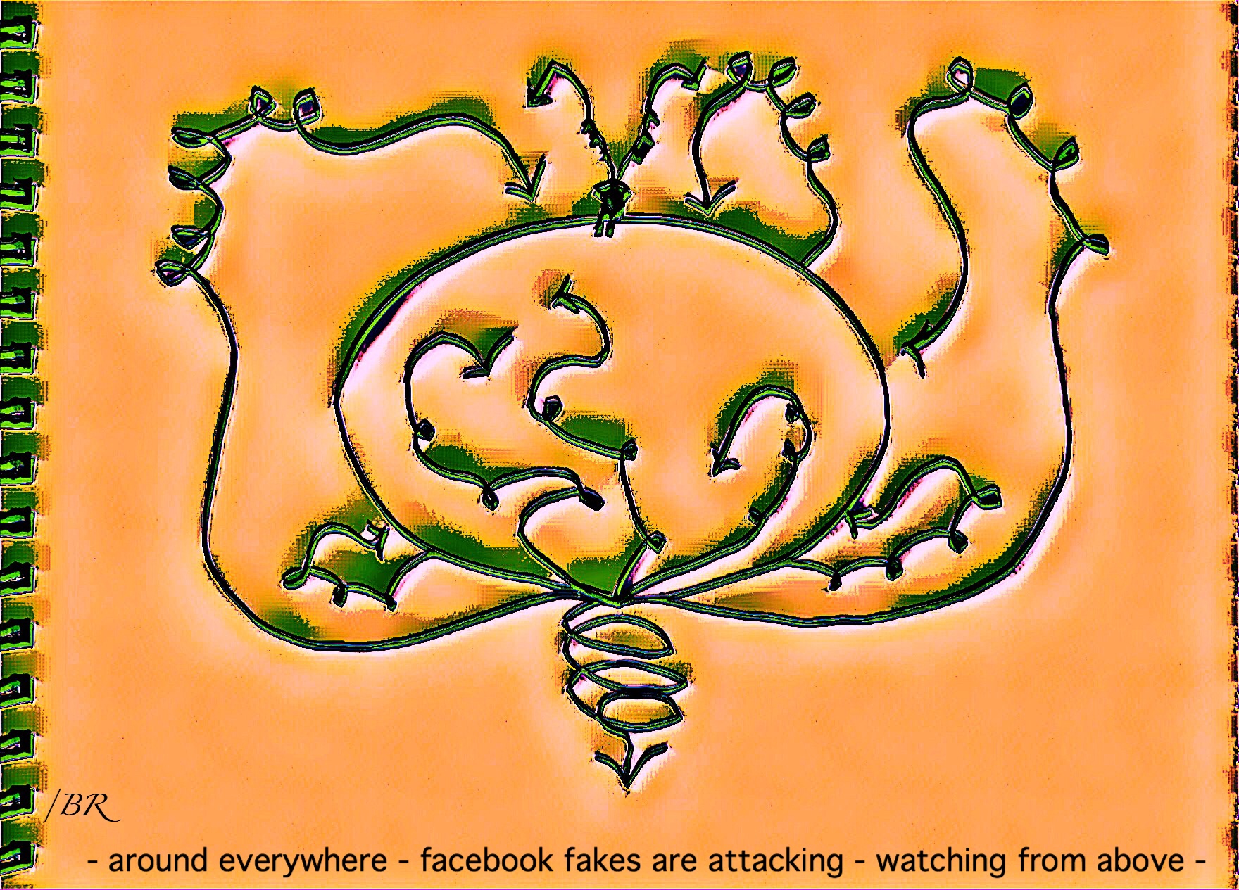Facebook Fakes November 27, 2018 by B i r g i t t a, posted in drawings, HAIKU, Poetry, politik, sketch – around everywhere – facebook fakes are attacking – watching from above – Like Loading...