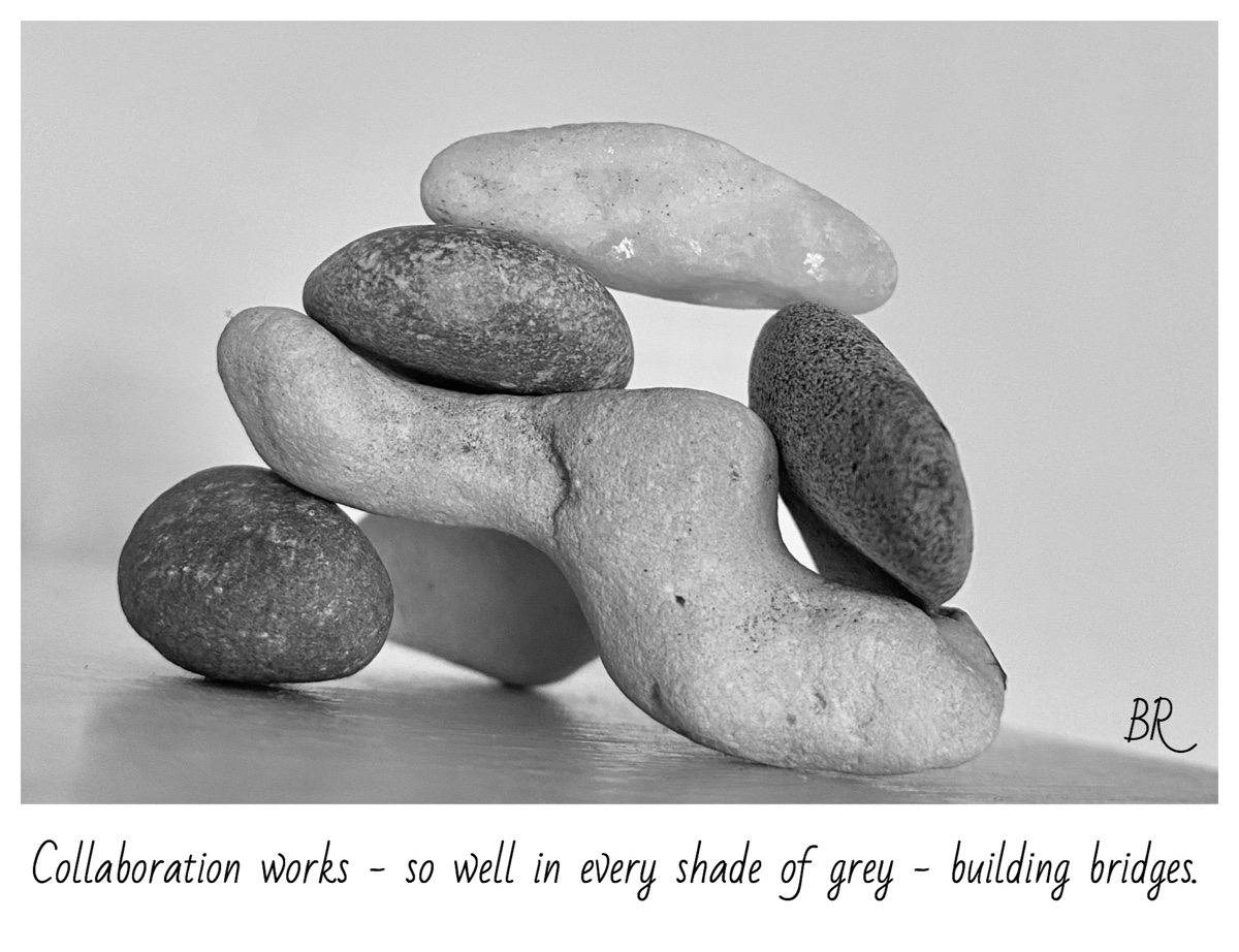 Building bridges April 14, 2020 by B i r g i t t a, posted in HAIKU, humanism, photography, Poetry, Stones Collaboration works – so well in every shade of grey – building bridges. Like Loading...