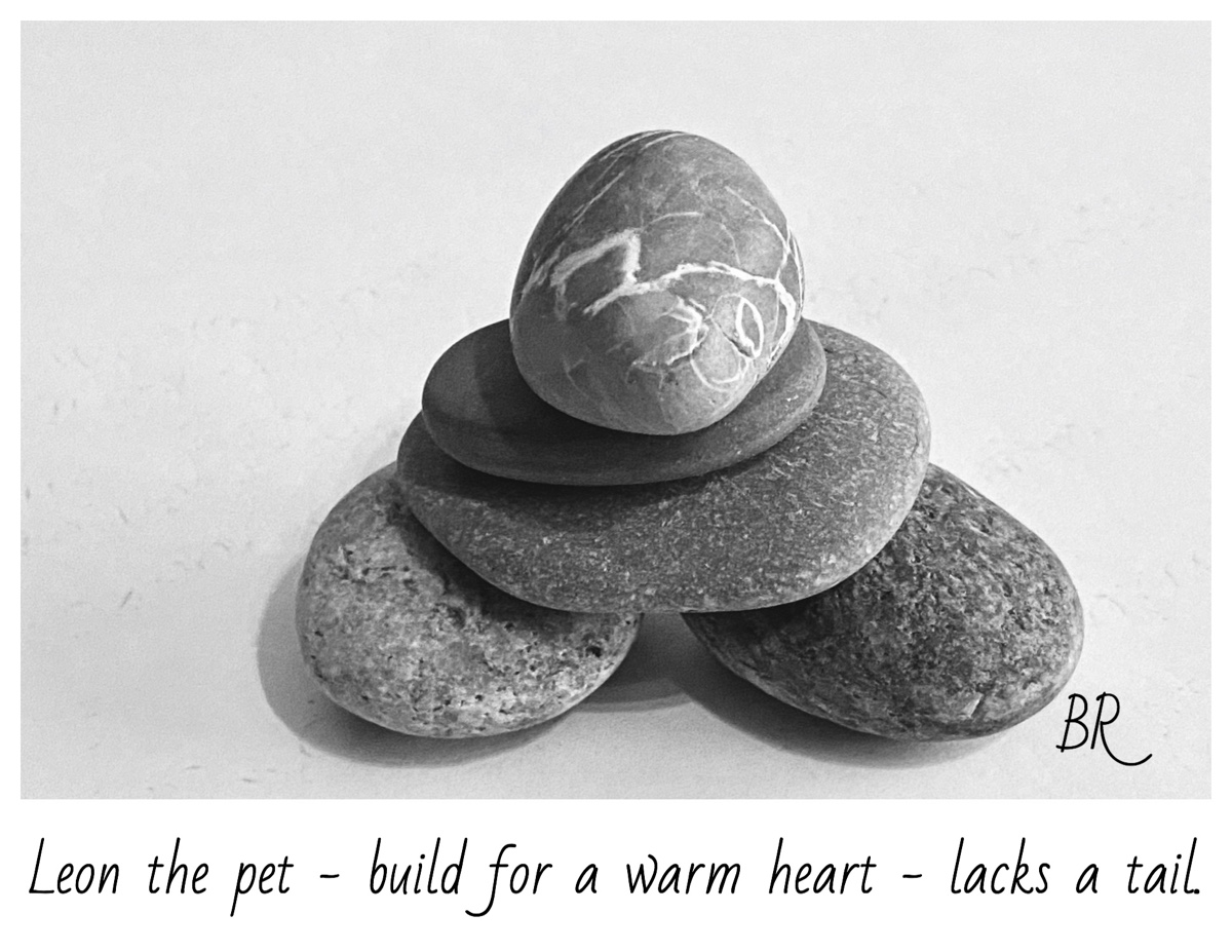 Leon the pet April 15, 2020 by B i r g i t t a, posted in dogs, HAIKU, just for fun, Poetry, Stones Leon the pet – build for a warm heart – lacks a tail. Like Loading...