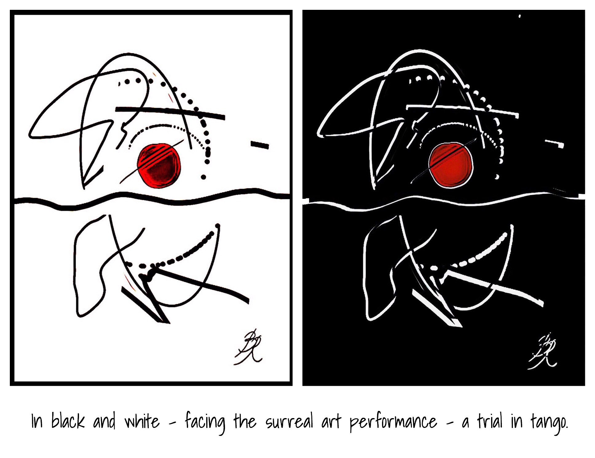 A trial in tango April 22, 2020 by B i r g i t t a, posted in Crazy Art, drawings, Face, HAIKU, Poetry, sketch In black and white – facing the surreal art performance – a trial in tango. Like Loading...