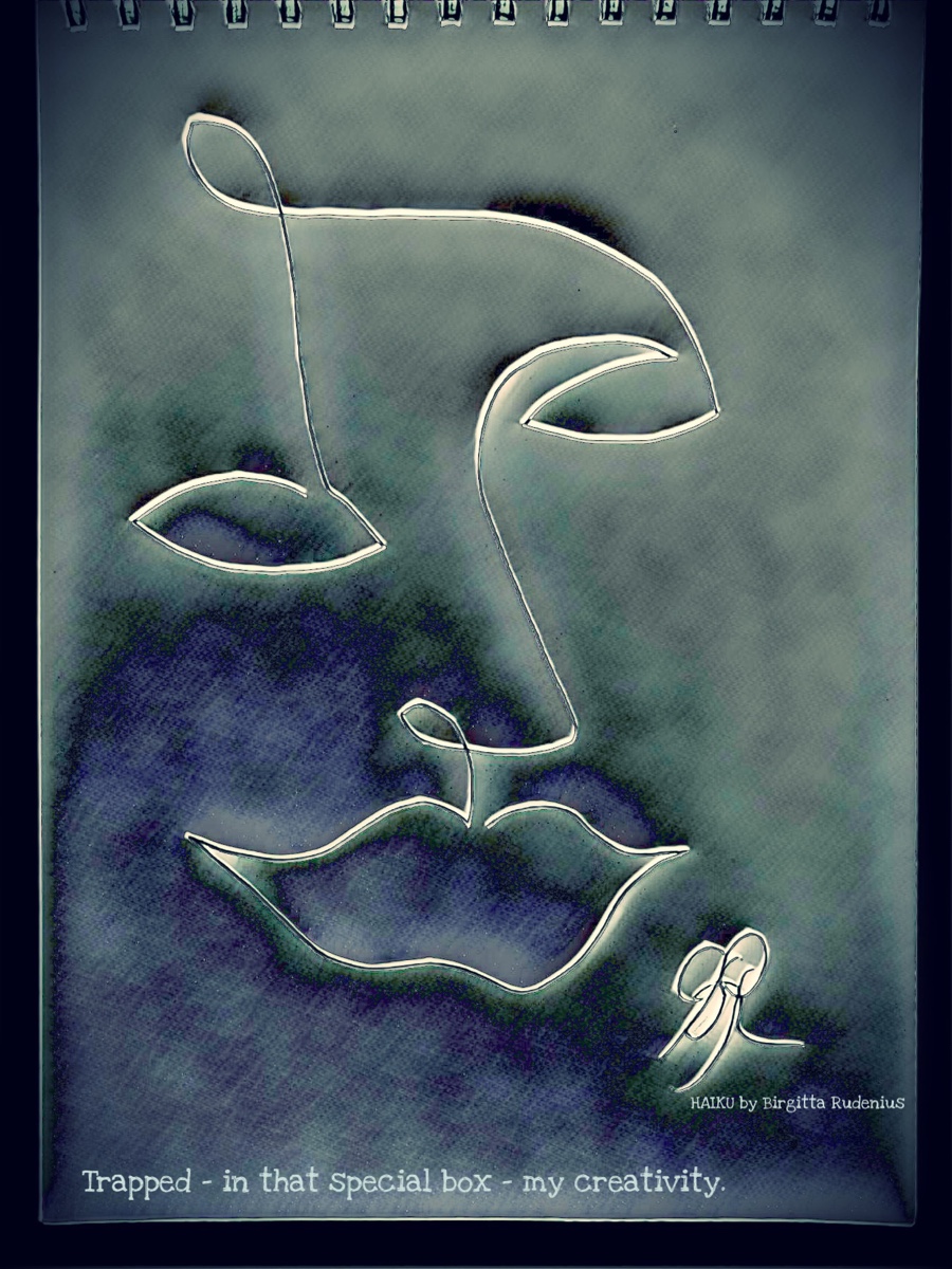 That special box July 17, 2021 by B i r g i t t a, posted in Crazy Art, drawings, Face, haiga, HAIKU, me, Poetry Trapped – in that special box – my creativity. Like Loading...