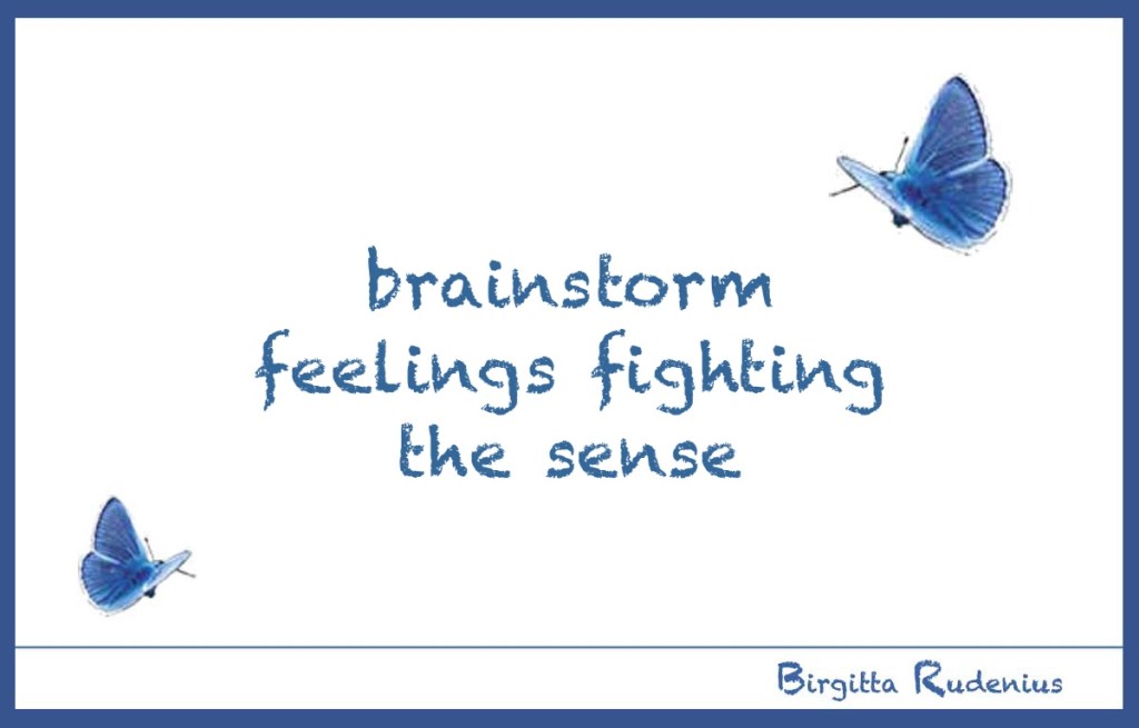 Feelings fighting January 31, 2022 by B i r g i t t a, posted in BRpoetry, Feelings, HAIKU, Poetry brainstormfeelings fightingthe senseBRpoetry #haiku #poetry #brainstorm
