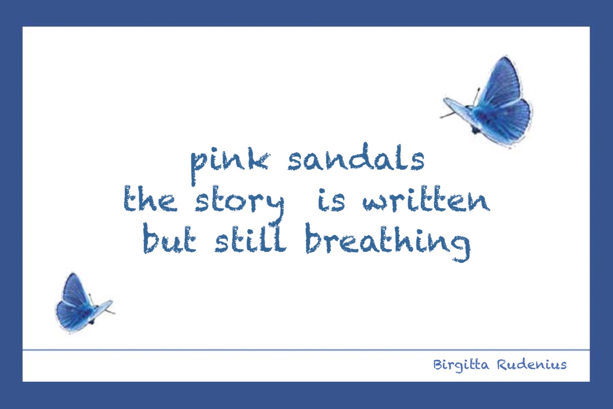 Still breathing February 5, 2022 by B i r g i t t a, posted in BRpoetry, HAIKU, Poetry pink sandalsthe story is writtenbut still breathingBRpoetry #haiku #dreaming #thehope Like Loading...