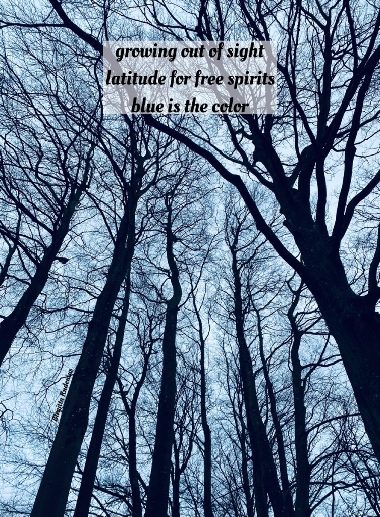 Free spirits February 7, 2022 by B i r g i t t a, posted in BRpoetry, haiga, HAIKU, Poetry, tree growing out of sightlatitude for free spiritsblue is the color#BRpoetry #haiku #haiga #freespirit