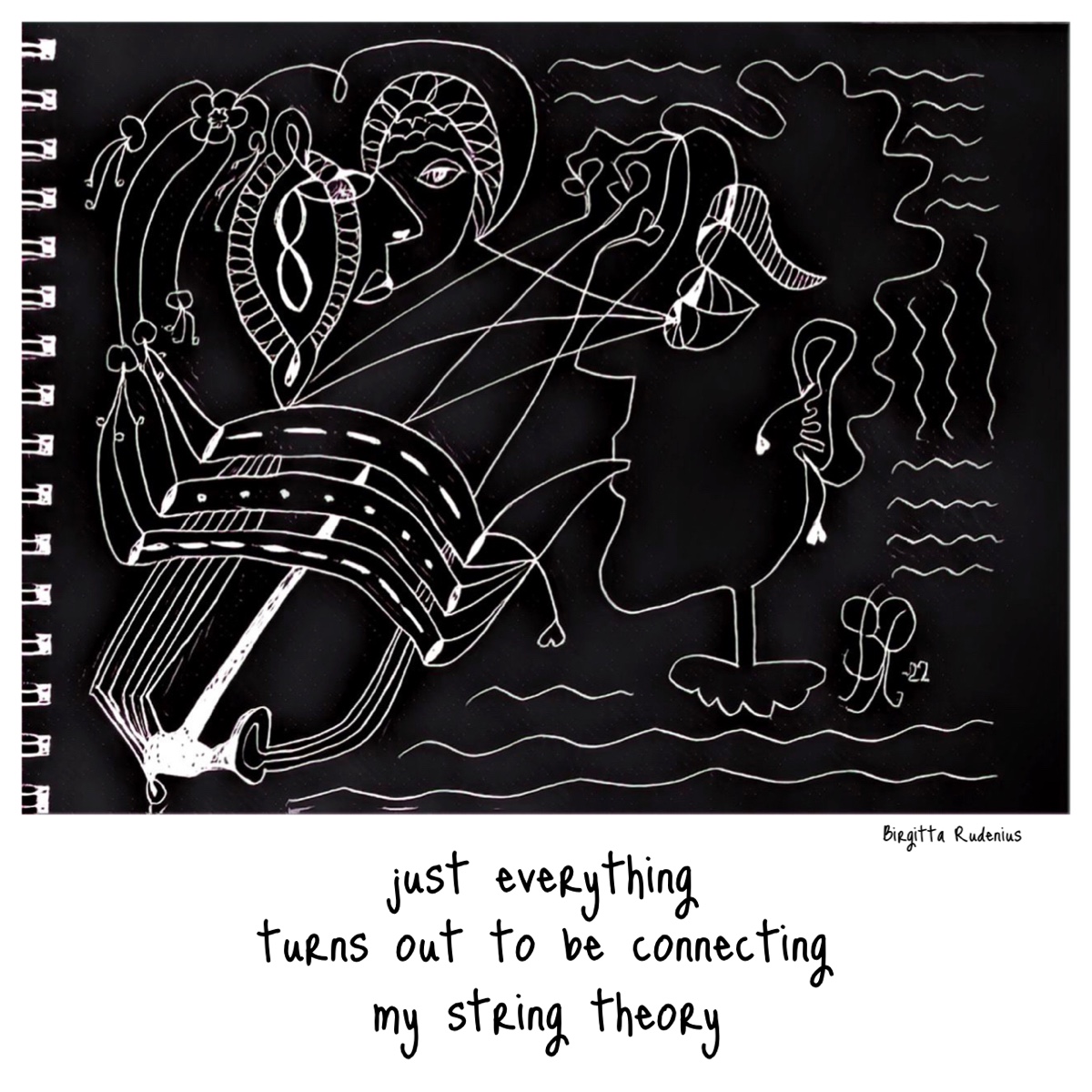 My string theory April 18, 2022 by B i r g i t t a, posted in BRpoetry, Crazy Art, drawings, Face, haiga, HAIKU, just for fun, livsfilosofi, Poetry, senryu, sketch just everythingturns out to be connectingmy string theory#mystringtheory #drawing #haiku #haiga #senryu #haikupoems #crazyart #BRpoetry #words #picsandpoetry #Ilovecreativity Like Loading...