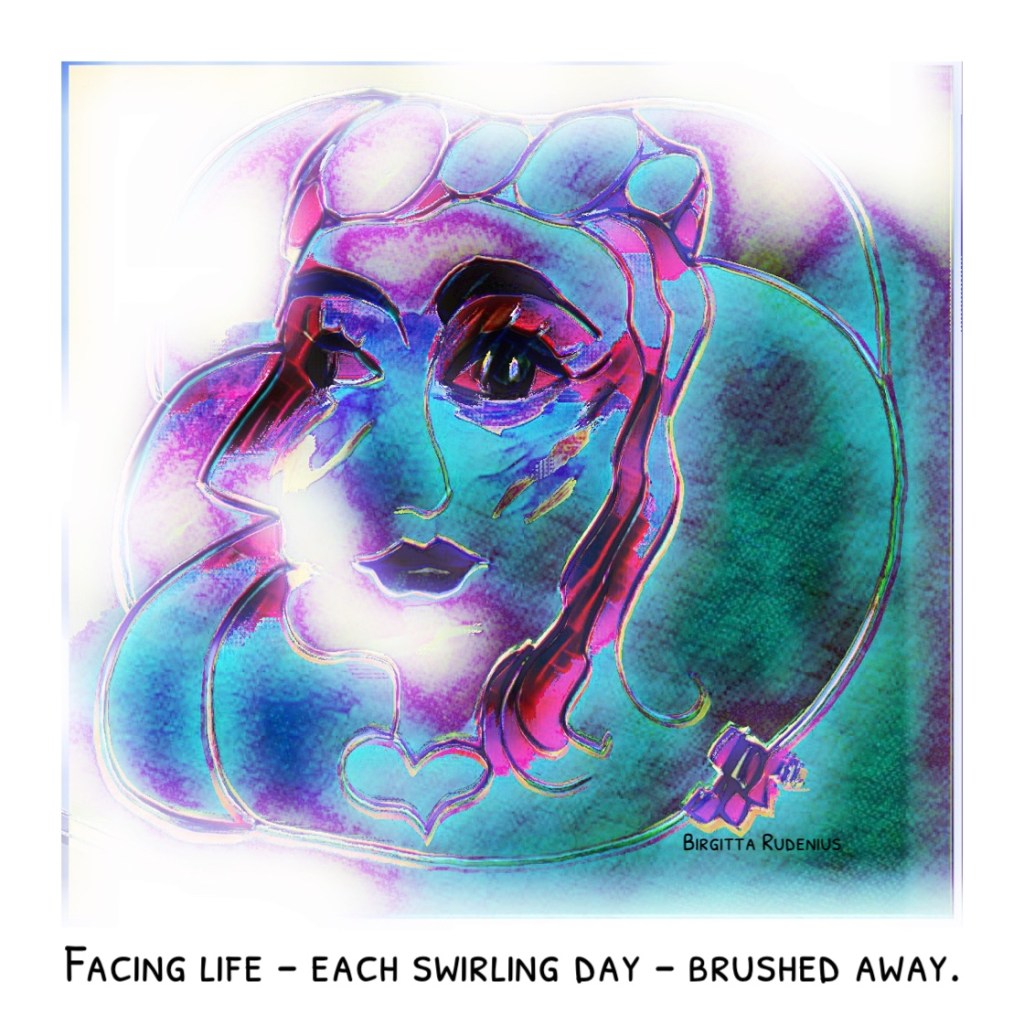 Brushed away May 3, 2022 by B i r g i t t a, posted in BRpoetry, Crazy Art, drawings, Face, haiga, HAIKU, Poetry, senryu, sketch Facing life – each swirling day – brushed away.