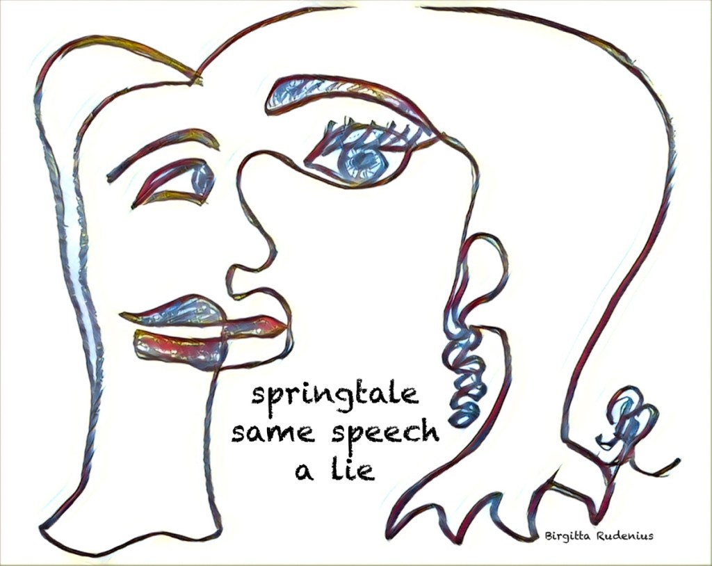 A lie February 1, 2022 by B i r g i t t a, posted in BRpoetry, Crazy Art, drawings, Face, haiga, HAIKU, he & she, Poetry, sketch springtalesame speecha lieBRpoetry #haiku #haiga #lie #speech