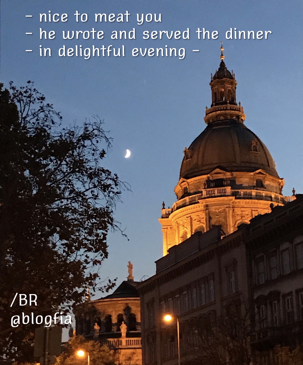 – nice to meat you – he wrote and served the dinner – in delughtful evening –