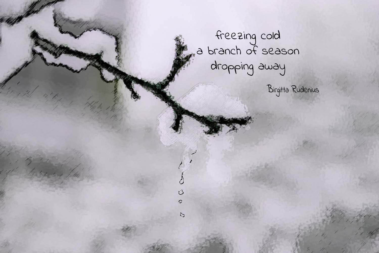 Freezing Cold November 22, 2022November 23, 2022 by B i r g i t t a, posted in 3lines, haiga, HAIKU, nature, photography, Poetry, weather freezing cold a branch of season dropping away *** ***